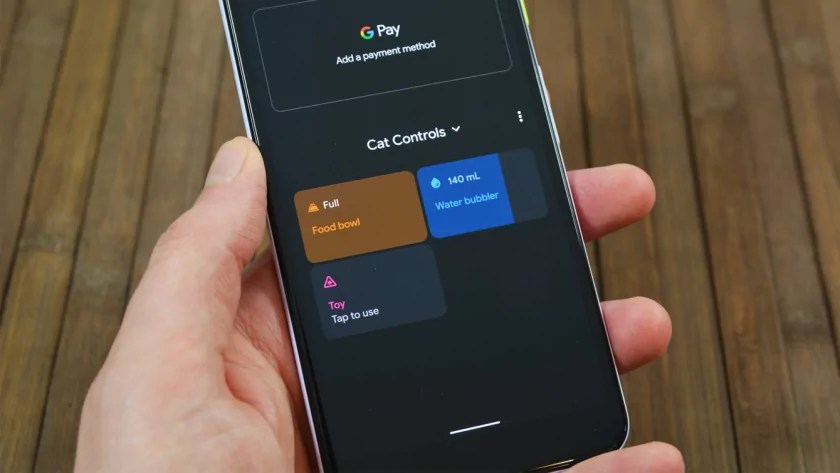 В меню управления умным домом нас интересует опция Cat Controls (при необходимости, раскройте список виджетов). В ней находятся элементы управления «удобствами» кошки: можно наполнить одну миску едой, а другую — водой, а также добавить игрушку (специальную для кошек, конечно).