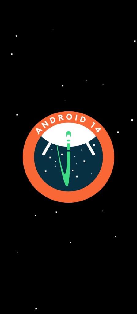 На 1-м шаге этого пасхального яйца появится логотип Android 14 на тёмном космическом фоне (не на фоне текущих обоев, как это обычно бывает). Звёзды (белые точки) на фоне постоянно двигаются.